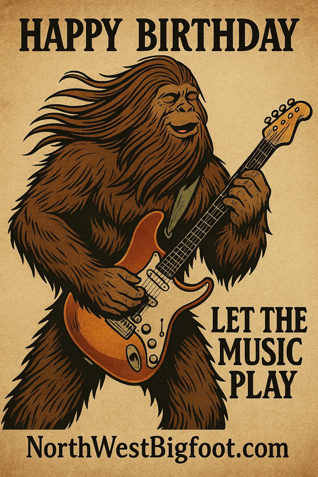 Brighten someone’s day with the Bigfoot Birthday eCards – Let the Music Play #5, a playful, downloadable greeting that sends legendary birthday wishes straight from the Northwest woods. This eCard features a cheeky Bigfoot illustration, a fun hand-lettered headline, and a warm, whimsical tone that works for friends, family, and fellow cryptid fans.