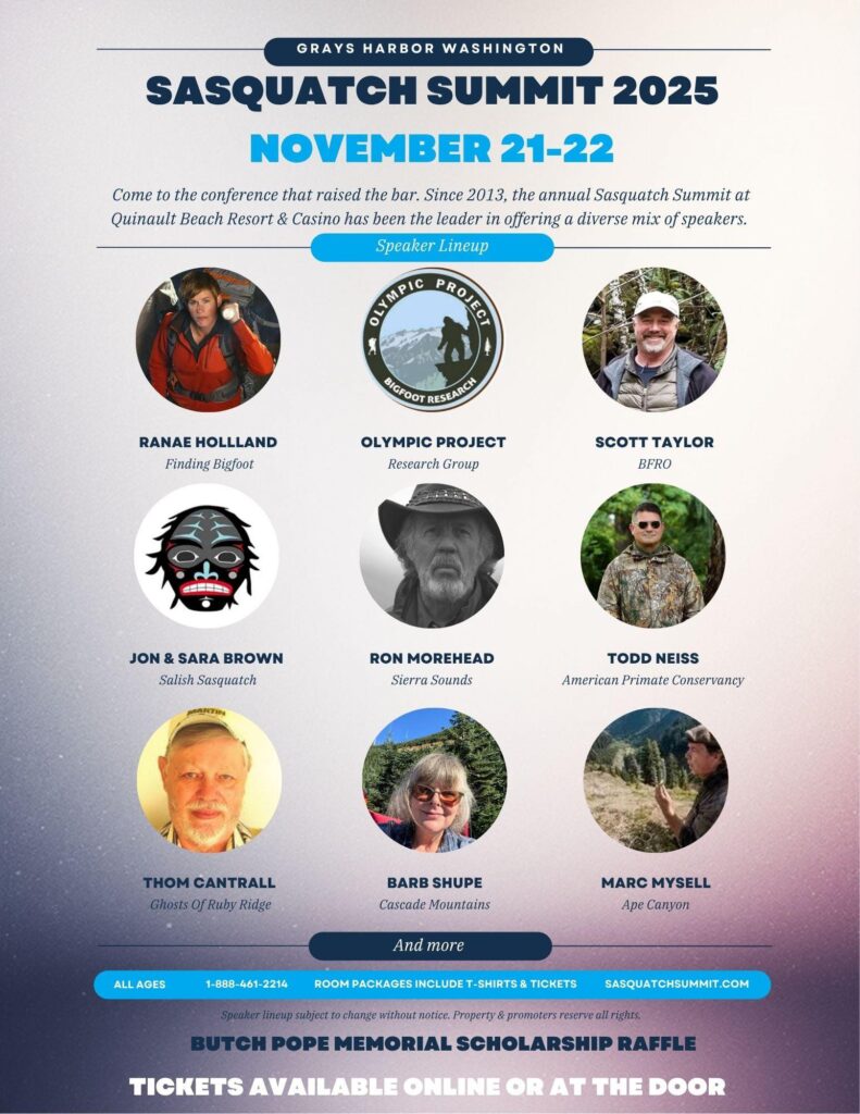 Sasquatch Summit is Washington’s premier Bigfoot research conference, billed as “the conference that raised the bar,” running since 2013 to bring together leading Sasquatch researchers, witnesses, and varied perspectives on the phenomenon.